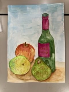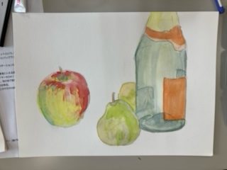 2時間という短い時間ですが、今回は、「くだもの」と「ビン」を画材として水彩画を描きました。